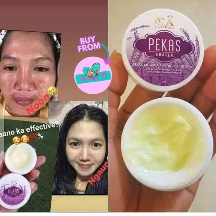 to erase dull and unwanted skinproblems, you only need one.Yes only 1 cream.And it's the Cadaposa Pekas Eraser Cream.It erases the following:💁♀️ Pekas/Freckles💁♀️ Melasma💁♀️ Facial Scar💁♀️Acne and Pimple marks💁♀️Darks pot💁♀️Blackheads and WhiteheadsHOW TO USE PEKAS ERASER CREAM ♡1. Wash you face with any soap or facial wash2. To remove excess oil or dirt, use any desired toner. This is optional. (Notreally necessary)3. Apply a pea size of Pekas Eraser Cream on your face or affected area.Use only at night. Remember to apply sunscreen every 2 hours during the daytime.