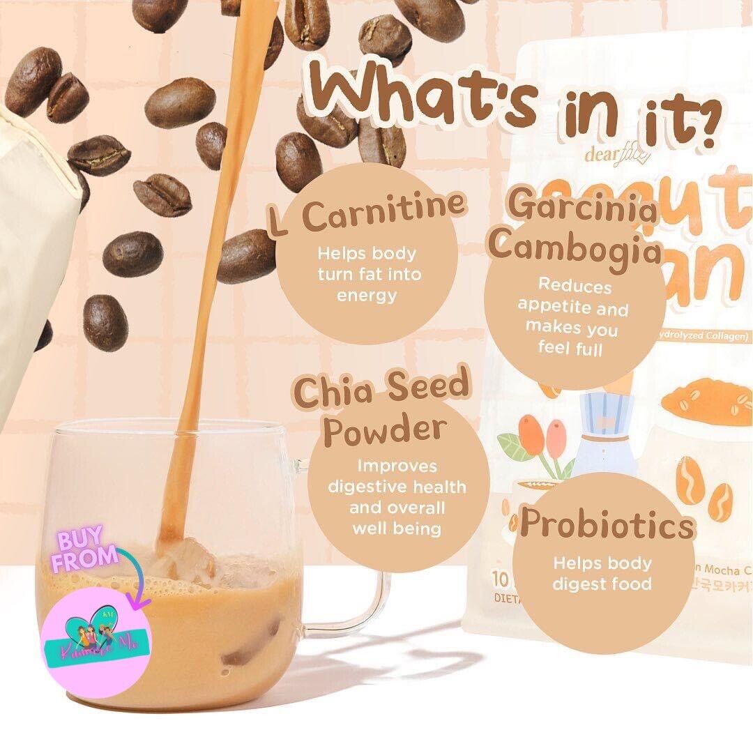 Dear Face BEAUTY BEAN Premium Korean Mocha Coffee, 10 Sachets X 18g.In love with Beauty Milk but also obsessed with coffee? Then get ready for a newcraving because Beauty Bean will take you to an even higher high!! ☺️☕️We only give you the best of the best ingredients from KOREA! Beauty Bean isPremium Korean Mocha flavored and just the right amount of sweetness withoutreal sugar 😋This yummy coffee is a top choice for a slimmer, healthier, & more glowing skinand body!Unlimited beauty in every bean 🫘A coffee addict’s dream ☁️☕️ Slimming☕️ No sugar (made with Stevia!)☕️ Infused with collagen☕️ Korean Mocha Coffee flavoredHow to get faster slimming results with the Beauty Bean?☕️ Workout or exercise at least 3 times a week!🏋🏼♀️ Use it as a pre-work out drink and it will double the calories you canburn! With additional benefits that can make your skin glowing and healthy!☕️ Increase your water intake☕️ Choose to incorporate more protein into your meals☕️ Drink Beauty Bean everyday 😉