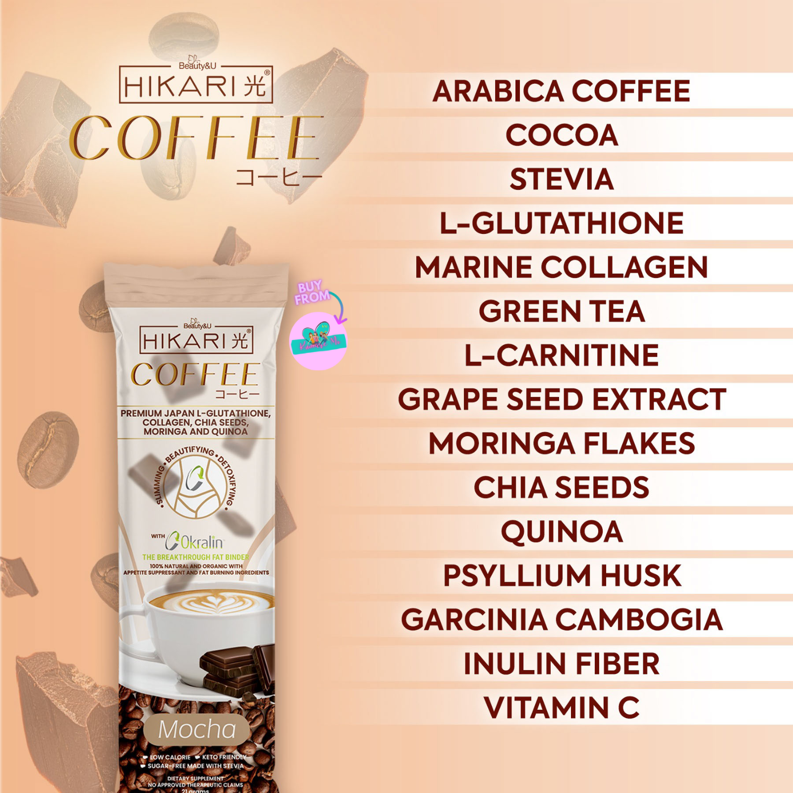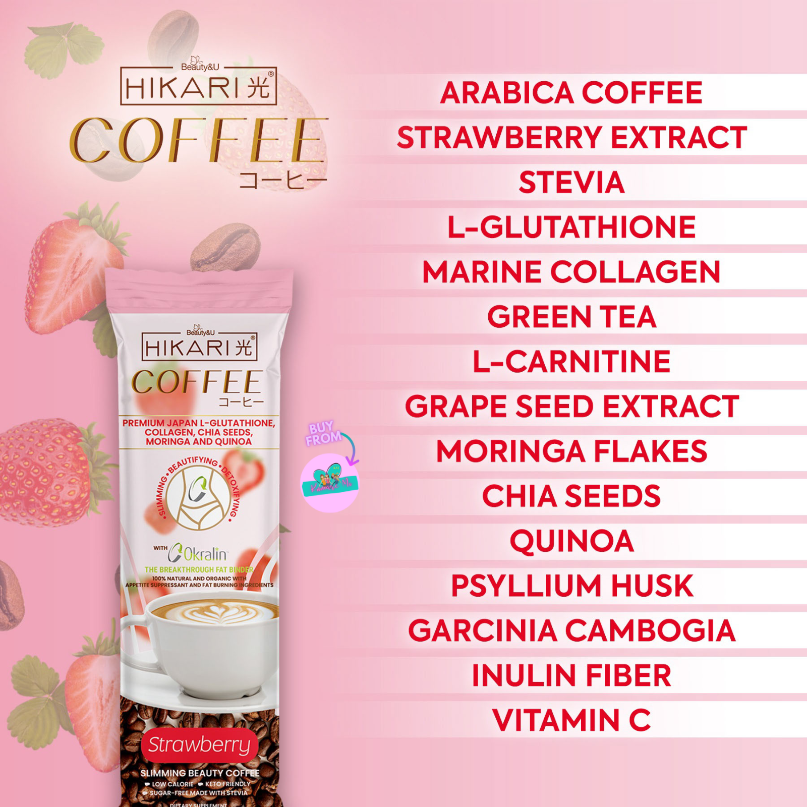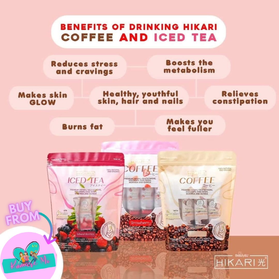 Introducing the newest product of Hikari, the Hikari Coffee Mocha, Hikari CoffeeStrawberry and Hikari Iced TeaCoffee MochaCoffee Strawberry Ice Tea Mixed Berries "Your everyday Beauty and Healthblend".☕🍃🌿 Start the day with a good Hikari Coffee ☕️🫶 at burning coffee and