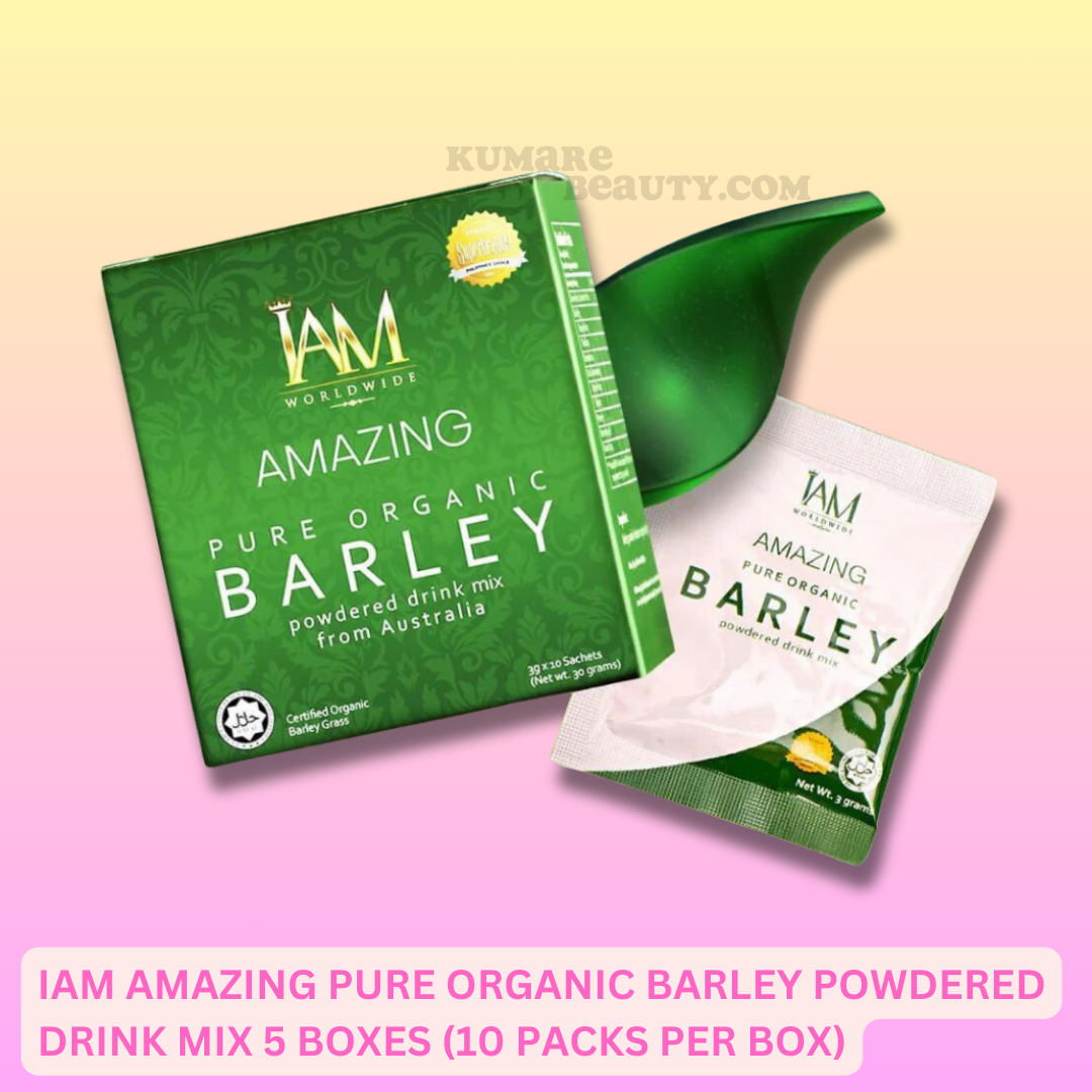iAM Amazing Pure Organic Barley Powdered Drink Mix 5 Boxes (10 Packs per Box)