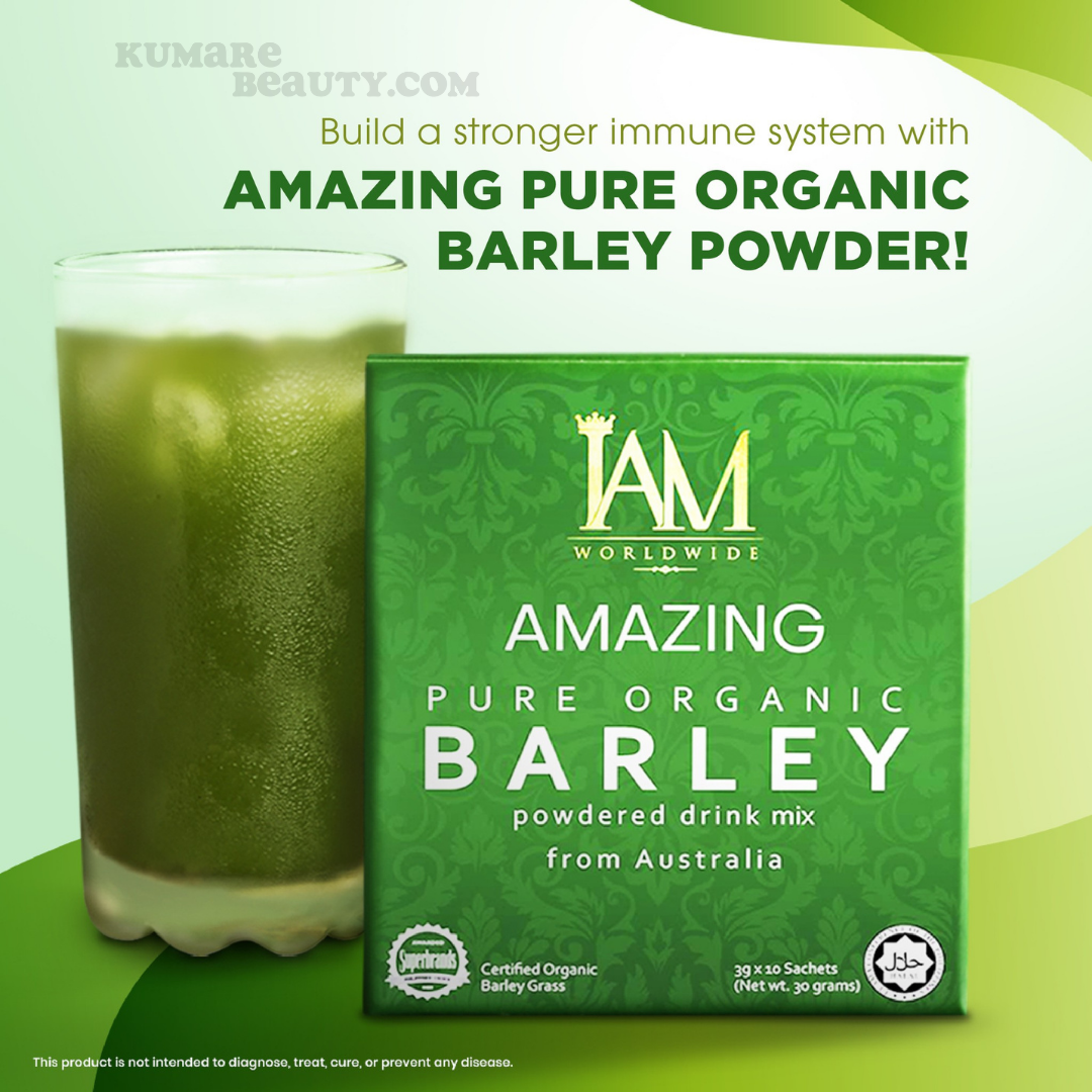 1. AMAZING PURE ORGANIC BARLEY is a health food supplement that contains the extract juice of young barley leaves. It is imported from Swan Hill, Australia and comes in powdered form. The young barley leaves are harvested and powdered when they reach the height of 20cm-30cm, before the ovule begins to move up and the grain develops. It is at this crucial stage that barley has its highest nutritional profile which is essential to the efficient running of the human body.