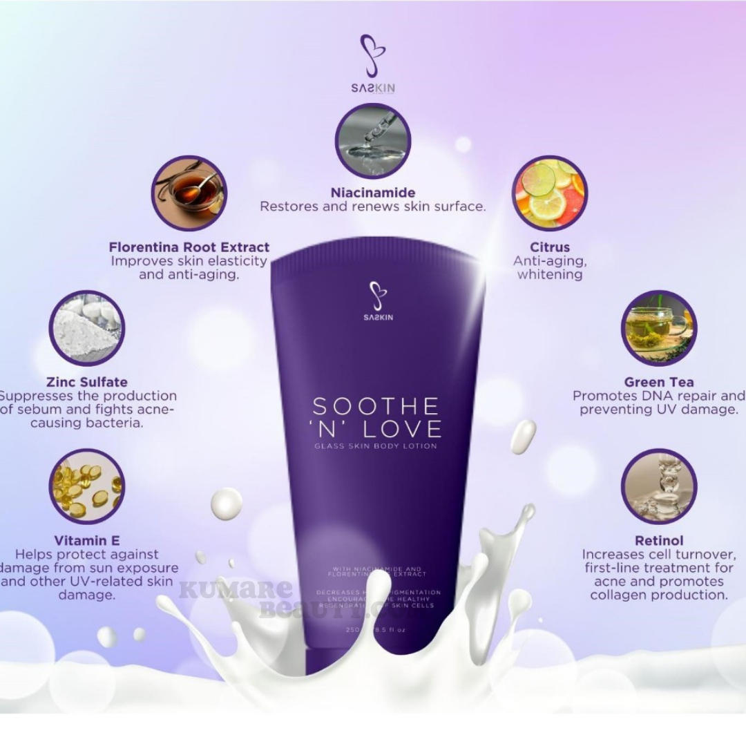 The Newest Saskin’s ‘SOOTHE ‘N’ LOVE’ Glass Skin Body Lotion w/ SPF 50 PA+++💜💜